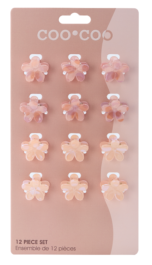 Bring charm to your collection with our 12 Pc Mini Floral Bloom Clips - Rose Quartz. Featuring a delicate floral design in a soft rose quartz hue, these clips are perfect for adding a touch of elegance to any hairstyle your customers will adore!