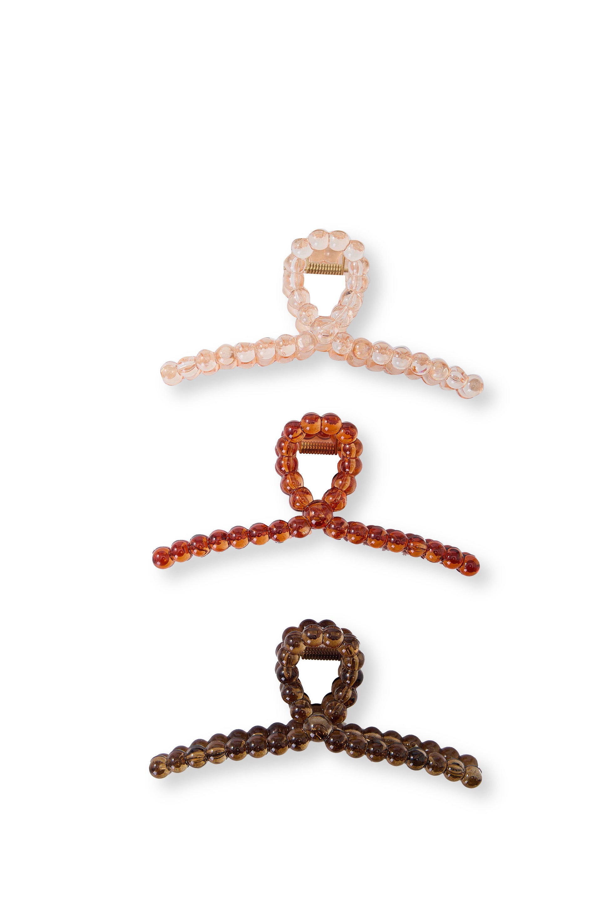 A set of three ivory bubble claws that provide a soft, secure hold while adding a touch of elegance to any hairstyle. Perfect for retailers looking to offer chic, versatile accessories.