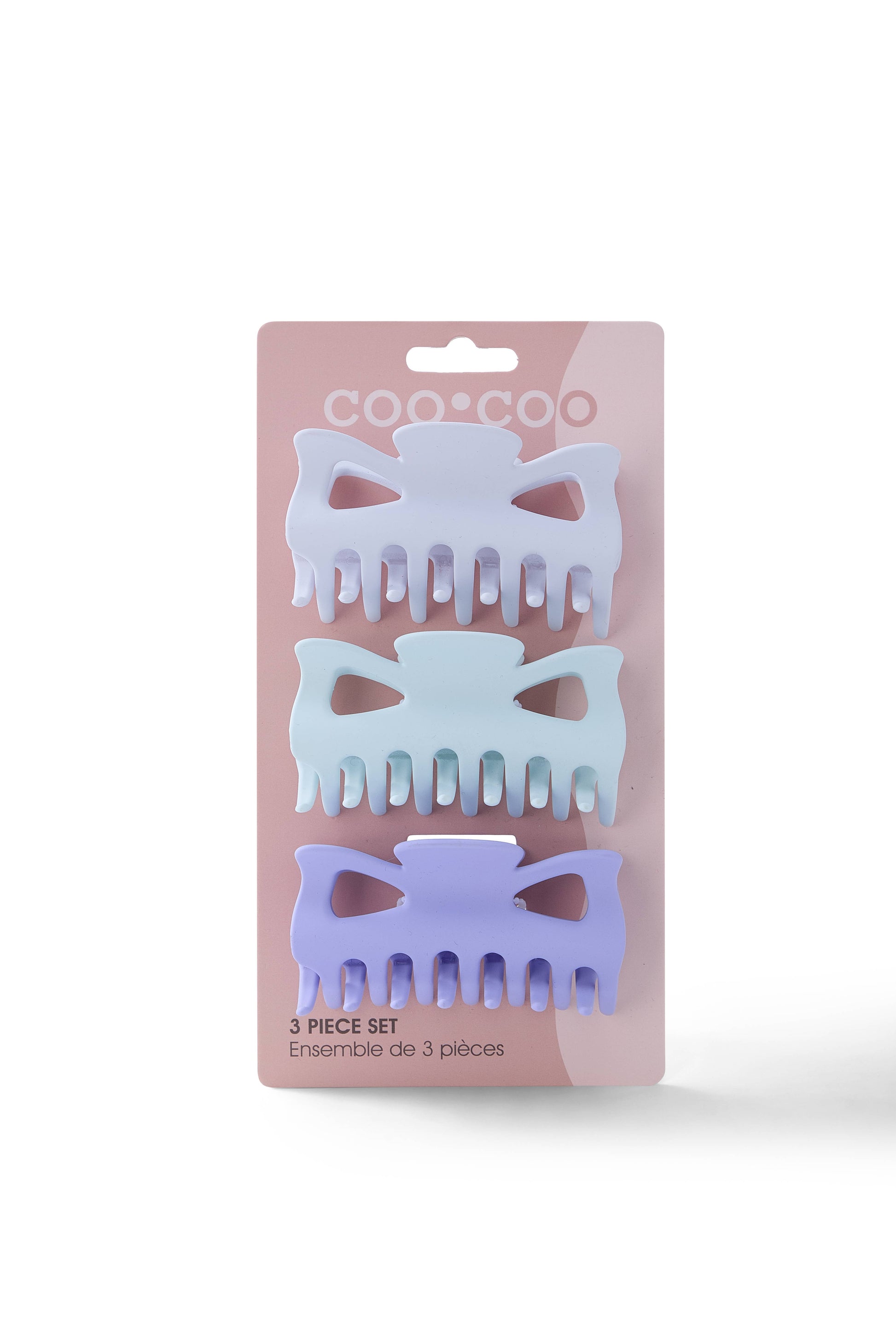 Lavendar butterfly claws in a set of three, offering a gentle yet secure hold with a fun, feminine twist. Ideal for beauty retailers seeking soft, pastel-toned accessories.