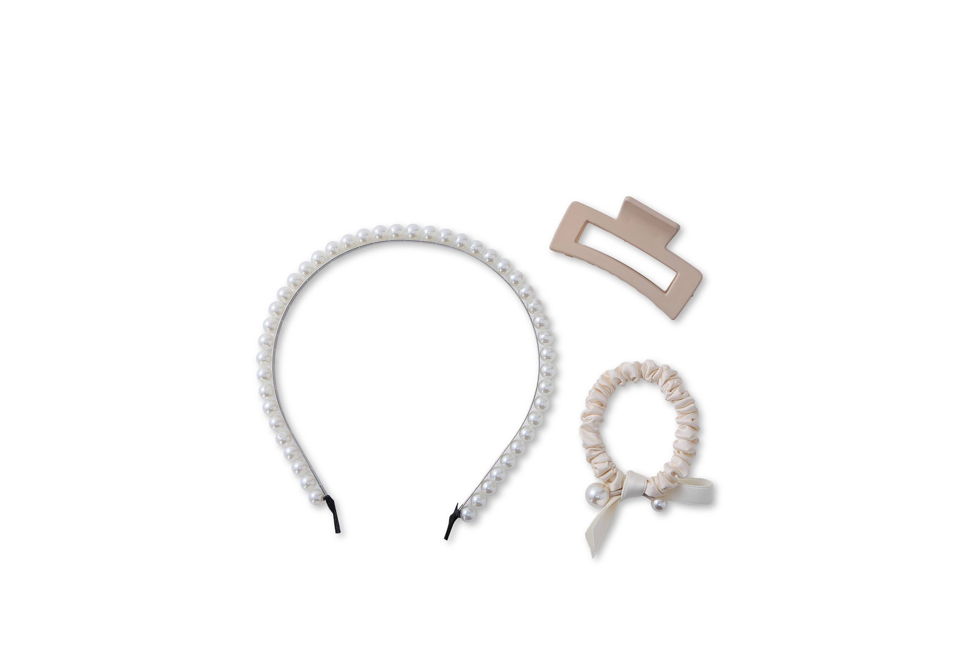 A refined set of ivory pearl hair claws that provide a secure hold with a touch of elegance. Ideal for retailers seeking to offer customers sophisticated, high-quality hair accessories.