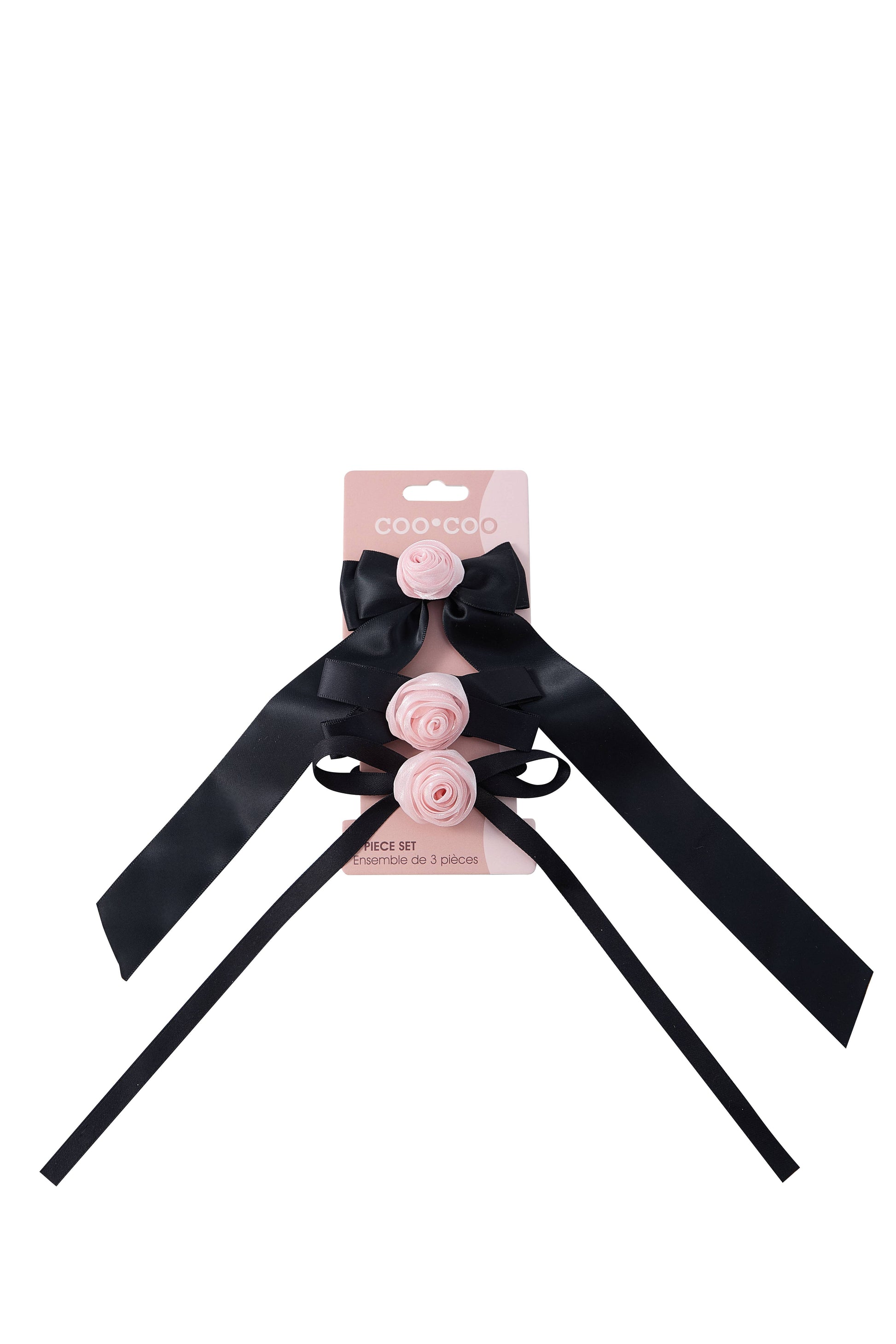 Elevate your hair accessories collection with our 3 PC Rose Tie Set in Rose Noir. Designed with a delicate rose-inspired detail, these hair ties add a subtle, romantic touch to any look while providing a secure yet gentle hold. Perfect for ponytails, braids, or as a stylish wrist accessory, this set is ideal for those who love a blend of elegance and functionality. A must-have for boutiques looking to offer trending, high-quality hair essentials.