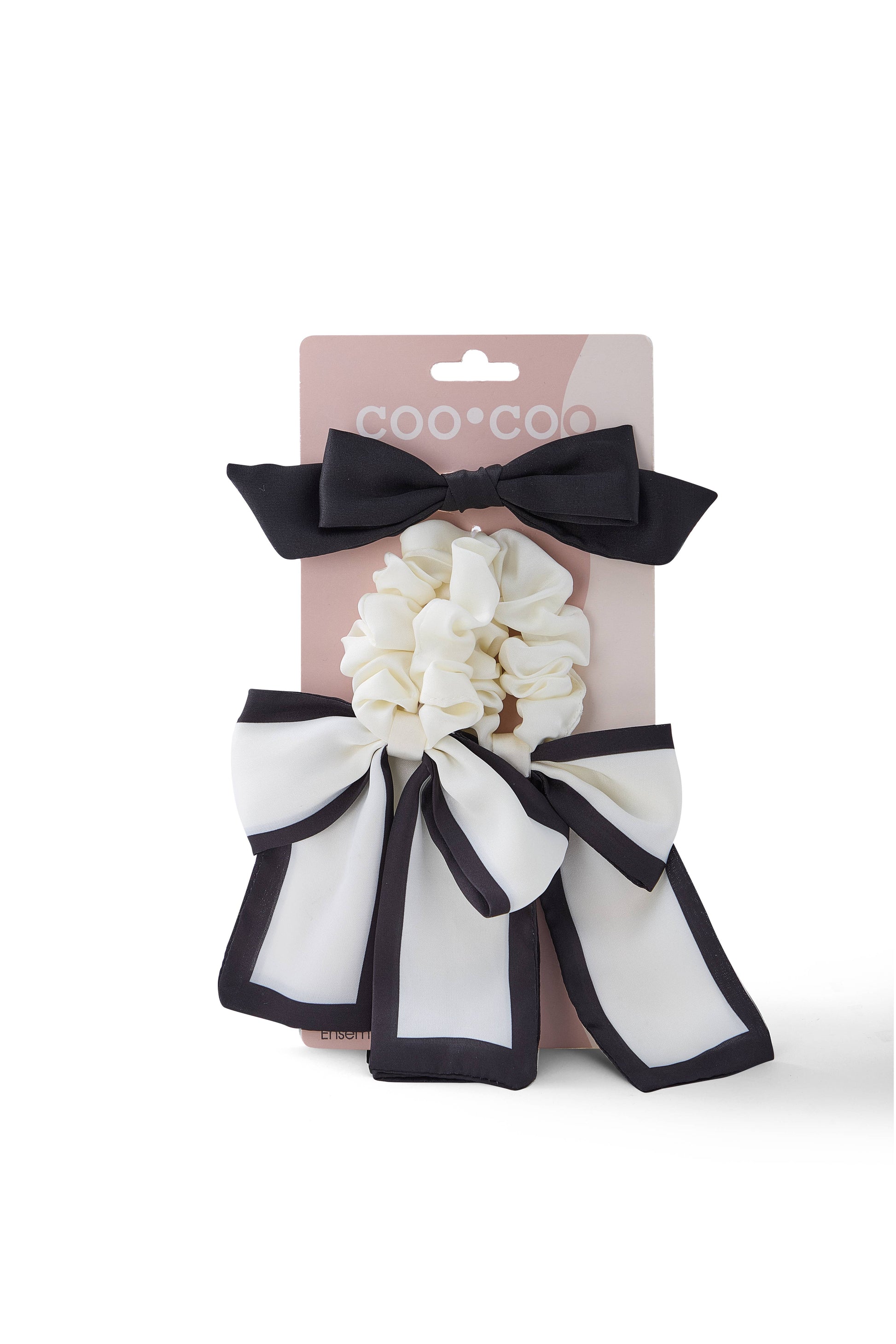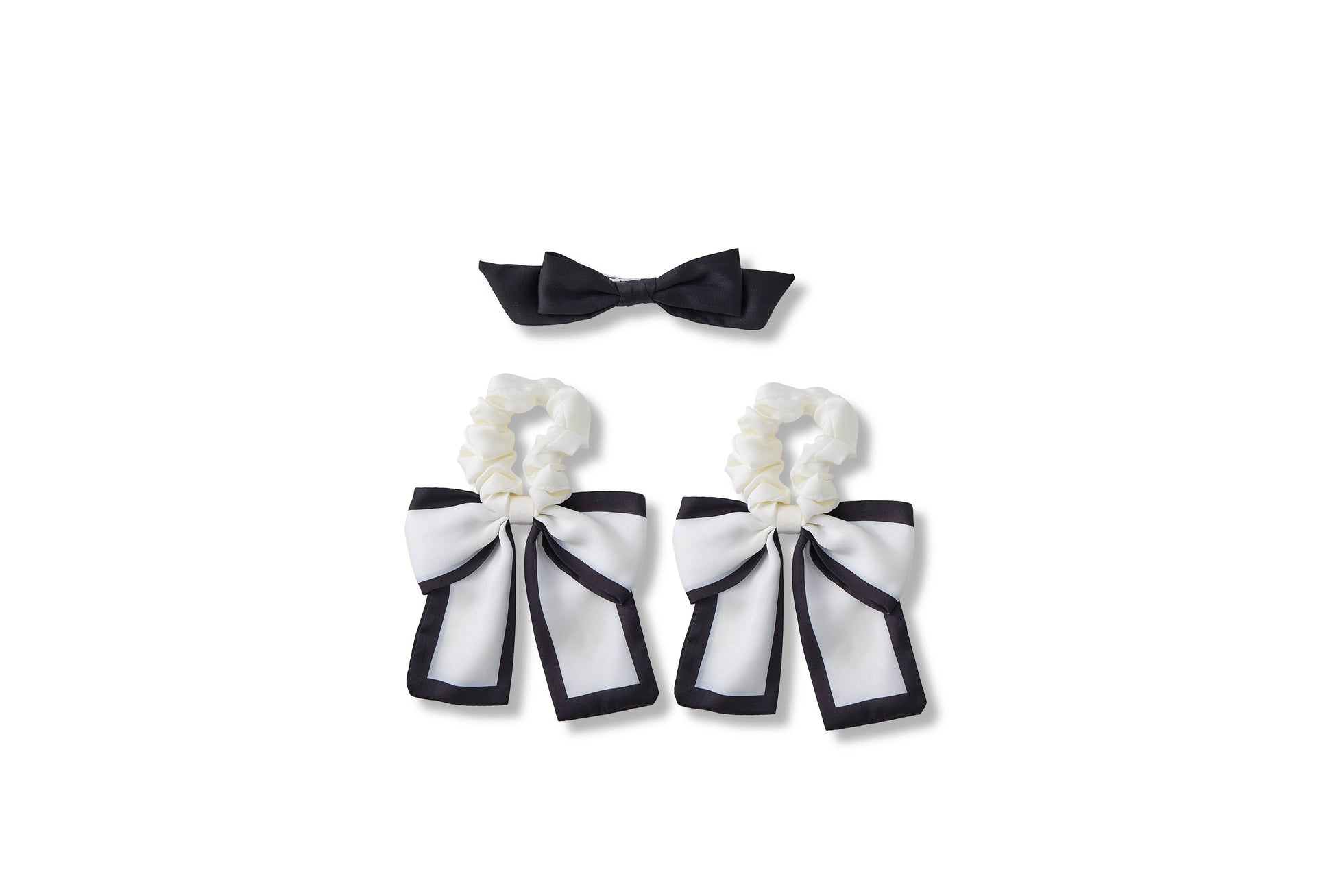 3 PC Western Bow Scrunchie & Bow Clip - Ivory/Black