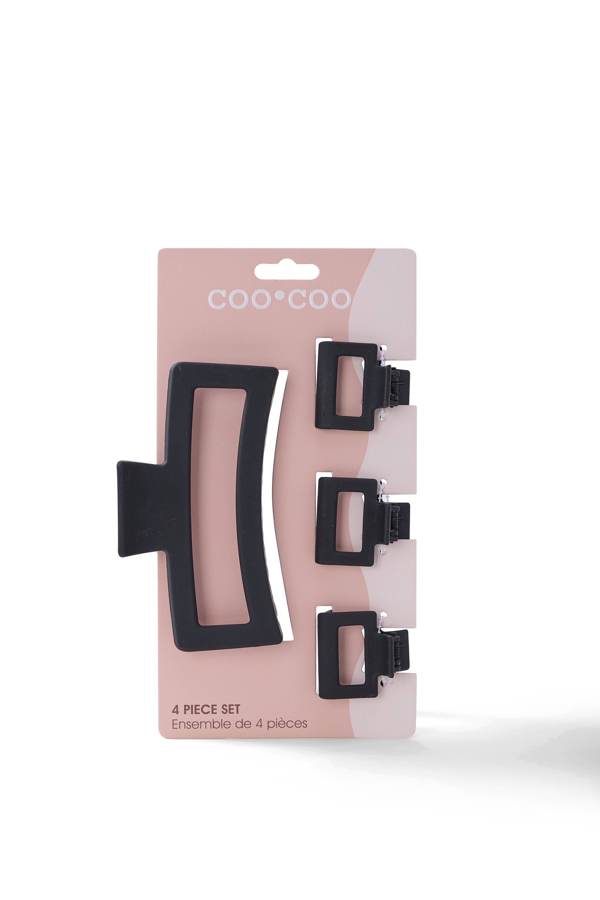 A set of four square matte claws in black, offering a modern, edgy style that complements any hair type. Ideal for retailers looking for sleek, bold hair accessories.