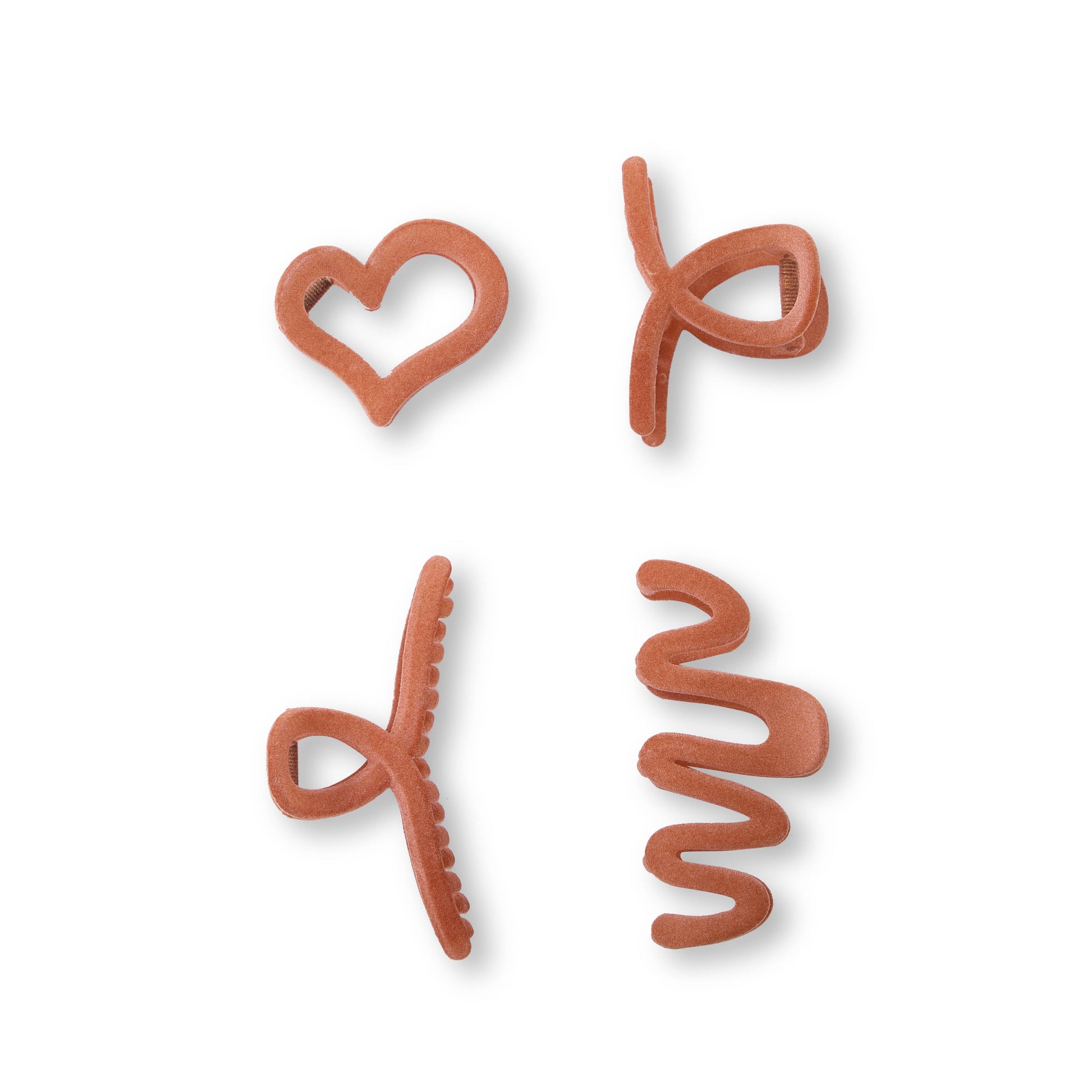 A soft and fresh set of four peach-colored velour claws, offering a gentle and feminine addition to any beauty collection. Perfect for retailers looking for elegant, textured accessories.