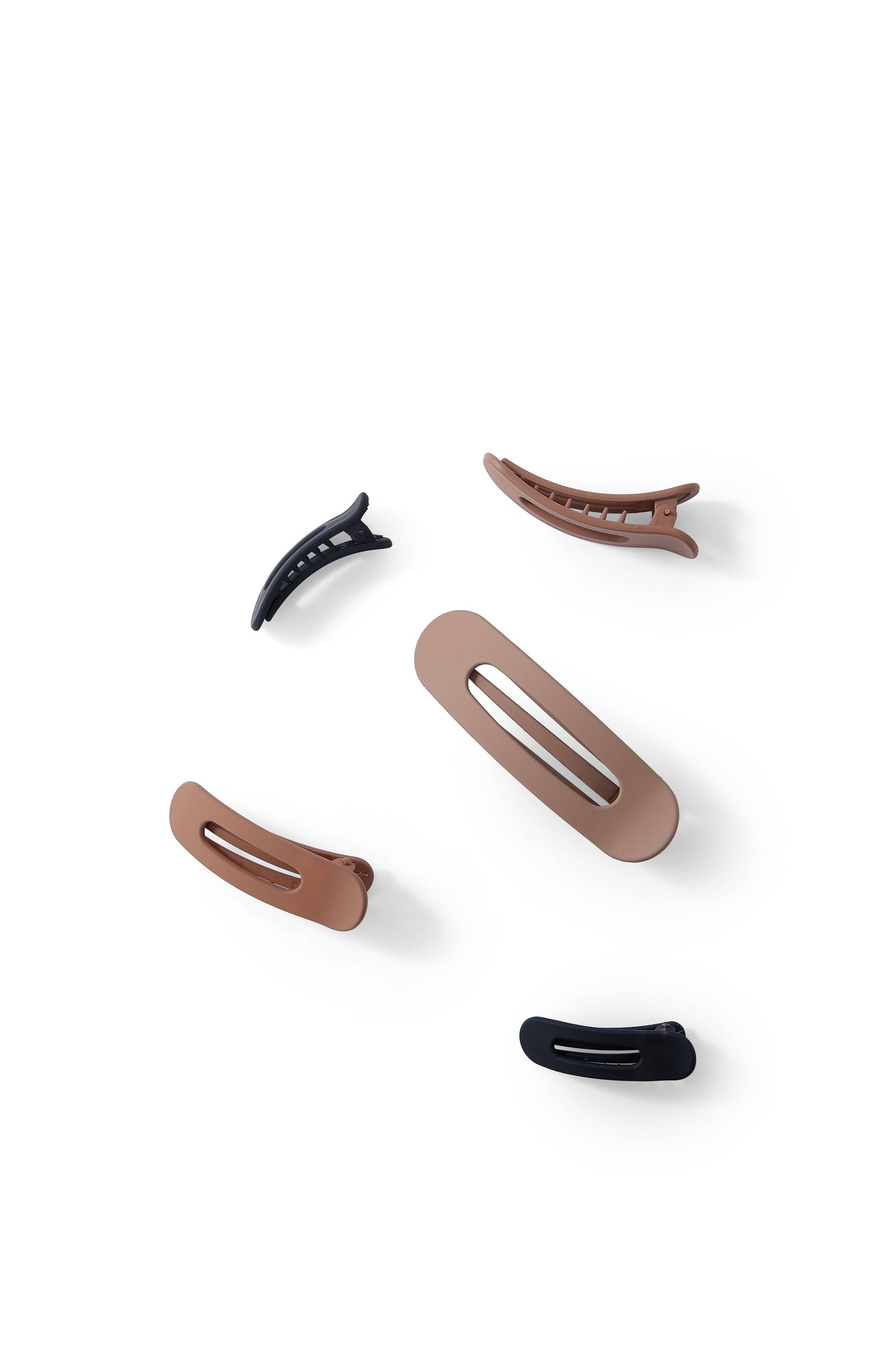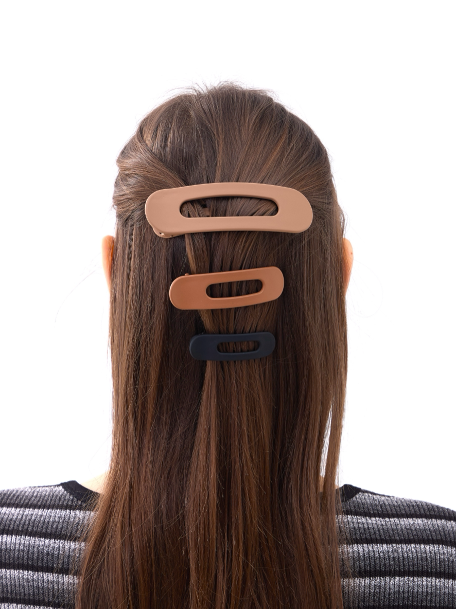 A set of five gingerbread brown jumbo barrettes, combining warmth and sophistication for every occasion. Perfect for stores seeking chic, oversized hair accessories.